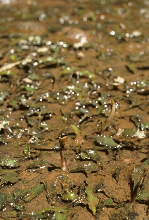 Var. jayaensis is rooted in loamy mineral soil. Note the long rhizomes.